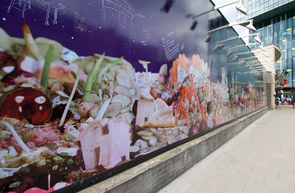 Hollow Earth is a fantastical world located in a spectacular galaxy of stars. The world was created communally in just one day using only food grown underground by catering students from Southwark College and London Underground staff. The star constellations were formed by star tasting profiles and drawings of memories and stories created from workshops with Chong Kwan.